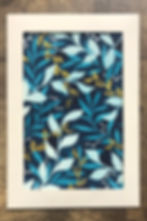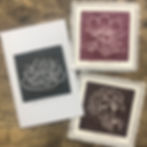 Relief designs hand-carved into rubber blocks, hand-printed with a baren and oil-based pigment ink